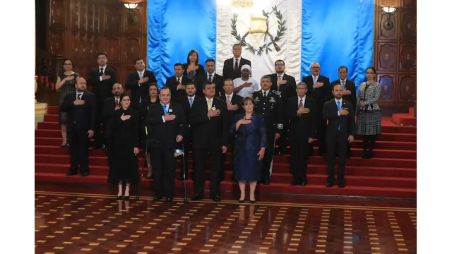 Mientras el presidente Alejandro Giammattei Falla presentaba y juramentaba a los integrantes del nuevo gobierno, un grupo de periodistas, invitados especiales e integrantes del cuerpo diplomático presenciaban el acto en el Palacio Nacional de la Cultura.